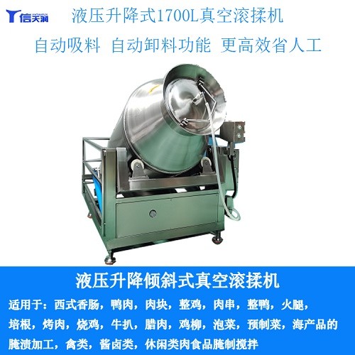 在現代化食品加工領域,對效率、衛生與品質的追求永無止境。無論是鮮肉嫩化,還是燒雞、臘肉的風味腌制,都離不開一臺核心設備——真空滾揉機。其中,1000L液壓升降式真空滾揉機以其卓越的性能和智能化操作,成為大中型食品加工企業的首選裝備。